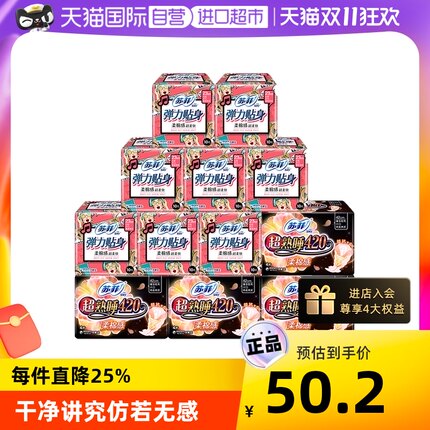 【下单享75折!】苏菲弹力贴身日用8包 超熟睡4包共96片,透气干爽,锁水强,吸收量大,柔软亲肤!告别黏损U,锁芯扇尾,放肆翻身~【退货运费险】