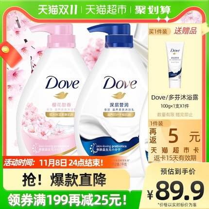 88VIP:Dove 多芬 沐浴乳深层营润1kg +樱花甜香1kg+190g 52.38元(返10元猫超卡后,需买2件,共104.76元,双重优惠)