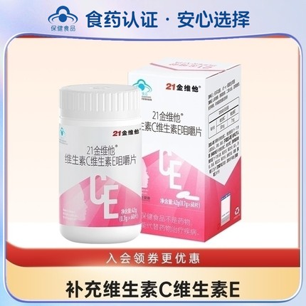 维生素C和维生素E同补,目前60片装天猫商城21金维他旗舰店售价¥79.9,叠加¥60优惠券,券后实付¥19.9包邮,再送30片*1瓶,到手共90片。