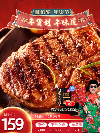 【¥159】必胜客必胜优选 西冷牛排130g*10片+黑胡椒酱*10