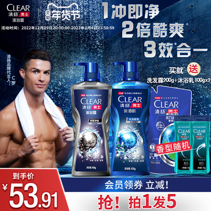 【赠沐浴露100g*2+洗发露200g】清扬男士冰凉酷爽+净澈控油沐浴露清爽不粘腻600g*2,带来2倍酷爽体验持续清新8小时!!