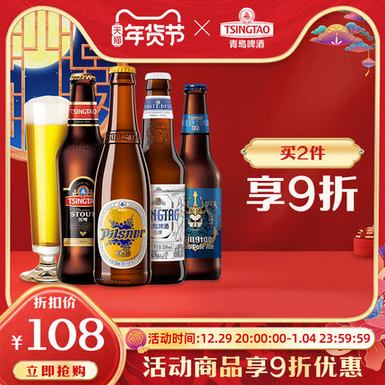 套装包括皮尔森、白啤、黑啤、ipa各2瓶,目前天猫商城青岛啤酒旗舰店售价¥108,下单9折,叠加2件9折,下单2件,实付¥172.8包邮,折合¥86.4/箱的新低价