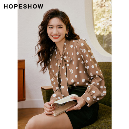 Hopeshow 红袖&徐琳琳联名款 气质波点泡泡袖衬衫 167元包邮