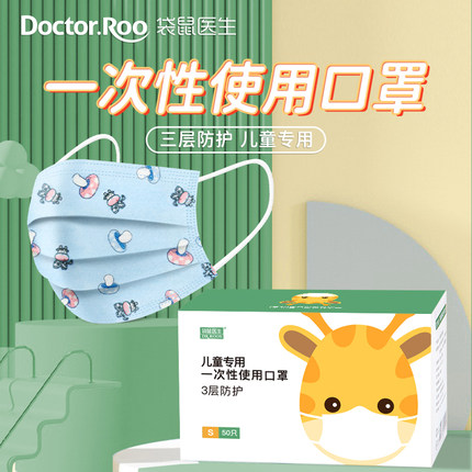 袋鼠医生 中大童一次性防护口罩 独立包装 50只 19.9元包邮(需用券)