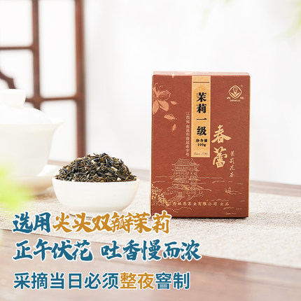 浓香型茉莉花茶,纯手工制作,条索紧结,色泽黄绿,入口醇厚浓郁,经久耐泡,回味余长~【赠送运险费】