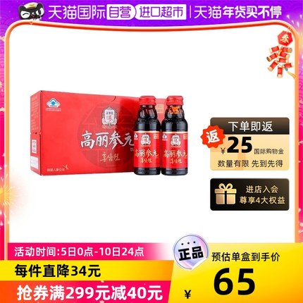 韩国正官庄6年根高丽参元100ml*30瓶饮料红参,超赞哦~