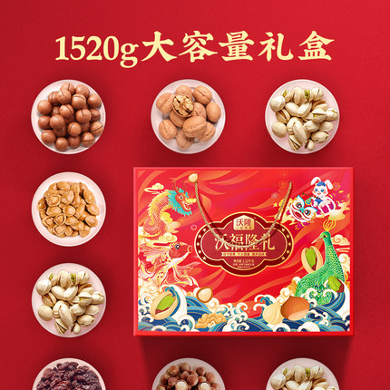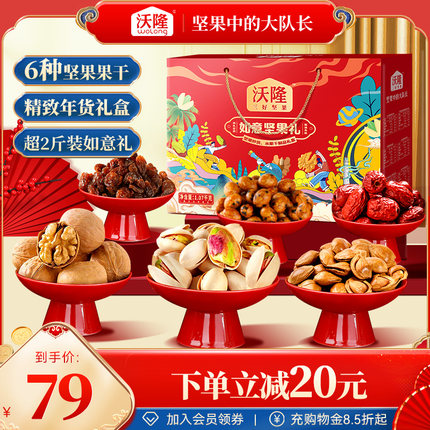 沃隆 如意坚果礼盒 1070g,6款坚果搭配,2斤多的礼盒。目前天猫商城特价99元,下单7.98折,叠加20元优惠券,实付59.01元包邮。