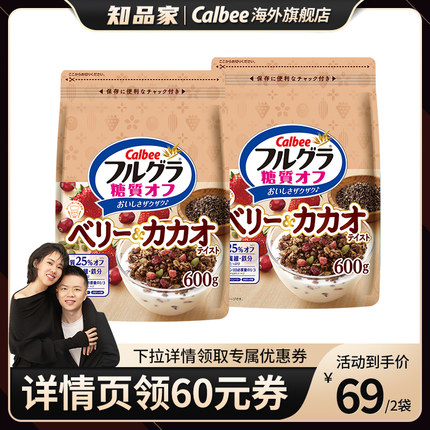 Calbee 卡乐比 可可莓莓减少糖麦片600g*2袋69元包邮(34.5元/件)