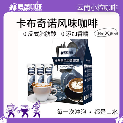 拍原价¥32.9选项,卡布奇诺和拿铁两种,后面还有白咖、奶咖、茶咖可选。精选云南小粒咖啡,咖啡中溶入牛奶,味道香醇浓郁,柔滑香甜,喝出现磨的口感。