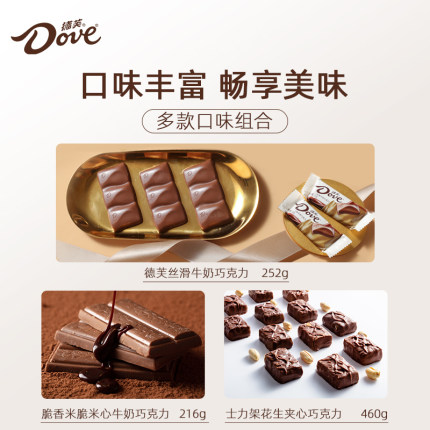 包含:德芙喜糖300g+脆香米12g*10+士力架20g*15+M豆花生牛奶巧克力13.5g*10,都是经典零食,礼盒包装,过年赠人也不错
