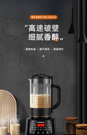 【康佳】多功能料理机破壁机,精钢波浪6叶刀,高速破壁,快速搅拌,细腻无渣,智能触屏面板,一键烹饪,24小时预约,1.65升大容量,一家都能吃,一机多用,冷热两用,一键破壁释放营养~【赠运费险