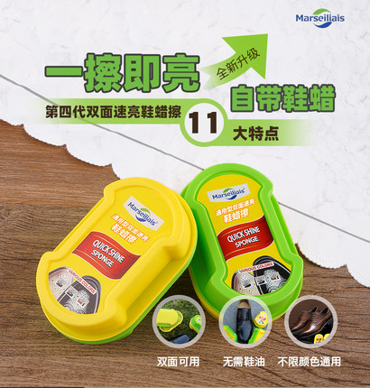 自带鞋蜡一擦即亮深层滋养,上光补色光亮如新,双色可选针对皮鞋,皮鞋焕然如新耐用!速亮海绵旧鞋秒变新鞋,护理一体柔软海绵不伤皮表,环保健康,气味清新不刺鼻,自带鞋蜡无需鞋油,双面可用,不限颜色通用