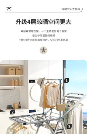 【嘉兰紫丁】不锈钢置地晾衣架!合理收纳,家里变宽敞,光滑细腻使用年限更长久,防水不生锈,不沾污渍,超高承重晾衣架,轻松晾晒被子神器~