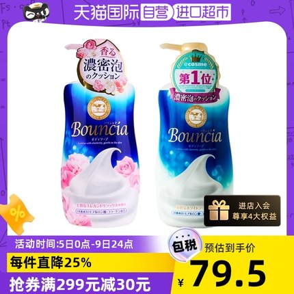 cosme大赏洗护第一,COW 牛乳石碱 Bouncia 浓密泡沫花香沐浴露 500mL*2瓶 69.5元包邮包税(合34.75元/瓶)