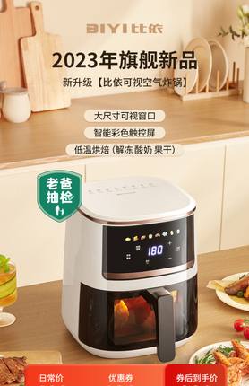 2023年旗舰2新品,4.5L大容量,可视微电脑触控,无油烹饪,美味健康。这款比依 AF-311A 家用全自动可视空气炸锅,4.5L大容量,智能NTC芯片处理,40-200℃广域控温,1-24小时调节,低温40-80℃控制,酸奶/果干/解冻,常规1-60分钟,80-200℃,煎炸烘焙焗,热能飓风3D环炸,9叶涡轮,360°热风循环,8大预置菜单,满足不同食材需求,空气热流代替热油,利用食材本身的油脂炸取,比传统炸取方式减少油脂80%,锁住鲜香嫩滑。食品级PP材质外壳,耐温不变形,多种温控保护,使用更安全。
