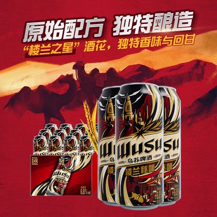 临期白菜!乌苏啤酒 楼兰秘酿 增强版啤酒330mL*24罐装新低79.9元包邮