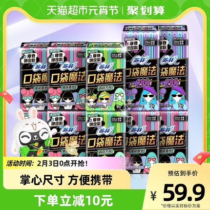 摩登限定款,包含日用零味感240mm*10片*6包+日用森呼吸240mm*9片*2包+夜用290mm*7片*2包[酷]吸收区加宽了大扇尾,防漏更安心,只有1/2掌心的尺寸,小巧便携。