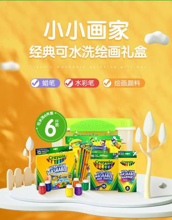 美国进口,可水洗,墨水升级,鲜艳亮丽,环保无毒,让孩子放肆玩,开心创作。目前天猫商城绘儿乐官方旗舰店售价¥199,叠加¥120优惠券,券后实付¥79包邮,套餐含:12色可水洗粗头水彩笔+8色水洗细头水彩笔+16色水洗蜡笔+6色颜料+画刷4支+收纳盒。。通过美国AP认证,可水洗,手指涂鸦画等,轻松可水洗;笔身环保级PP材质,不怕宝宝啃咬;空气笔帽,防止宝宝意外吞咽时造成窒息危险;圆锥形粗头,倾斜角不同可以画出不同粗细的线条;经典鲜艳色彩,丰富宝宝色彩认知。