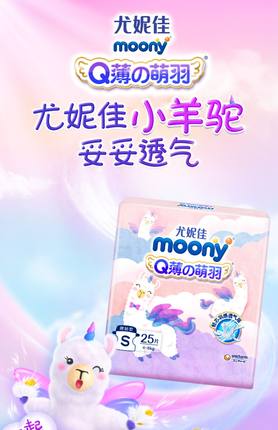 只需35元,尤妮佳moonyQ薄萌羽小羊驼新生儿腰贴便携纸尿裤,新享装S25/M18