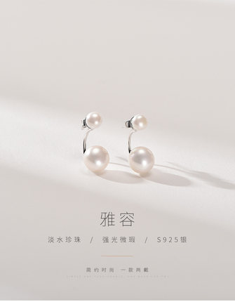 京润珍珠 耳钉雅容 925银淡水珍珠双珠耳钉女简约耳环情人节礼物A 199元(需用券)