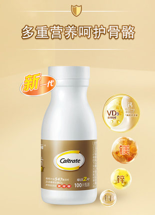 金钙尔奇添佳片,新升级国药准字版本,每片营养新升级,深度强韧骨骼,营养成分新升级,补充钙镁锌铜及VD,是普通钙片的2倍,双倍维D元素光速促进钙吸收。目前60片*3瓶天猫商城阿里健康大药房售价¥118,叠加¥42优惠券,实付¥76包邮,折¥25.33/瓶,88VIP会员还可95折,入手好价 。惠氏 钙尔奇牌添佳片,每两片含高浓度钙547mg,能够帮助补足一天除膳食外所需的钙量,同时特别含有维生素D3、镁、锌、铜等健骨营养素,均衡补充骨营养素,帮助骨骼全面健康。每日一次,每次2片,随餐服用。