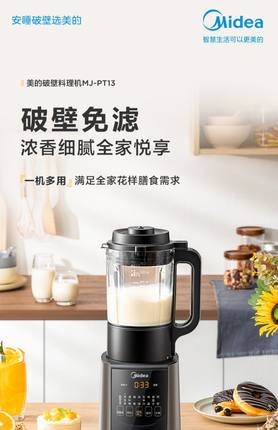【下单抽空调】美的品质,质量杠杠的,闪电发货,大部分地区隔日达!低音破壁,冷热双打,陶瓷不沾底盘,一键高温煮洗!超方便,超好用!
