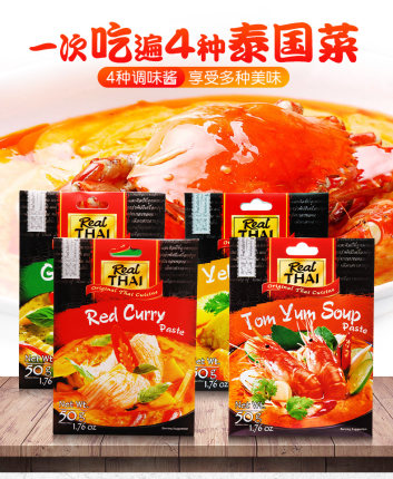 【合3.75元/包】泰国进口丽尔泰正宗咖喱酱,爆卖各大国内外商超!一次吃遍四种泰菜!黄咖喱蟹,红咖喱鸡,青咖喱鸡汤,冬阴功汤咖喱四种口味任你选,搭配丽尔泰椰浆,口感更丰富!小包装,更方便。