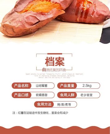 产地直发,东北瓦房店地瓜,溏心流油,软糯香甜,好吃又营养。目前大果5斤天猫商城鲜正宫旗舰店售价¥28.8,叠加¥9优惠券,券后实付¥19.8包邮。 “烟薯25号”是烟台市农科院通过杂交技术选育而成,2011年获全囯甘薯食用品质组竞赛鲜薯产量第二名、食味第一名。果肉颜色美观漂亮,蒸煮后颜色为金黄色,甜香味极好,糖度高,口感好,特别甜,特别容易烤地瓜,一烤就软烂。吃红薯防治便秘,疏通舒经通络。红薯脂肪含量低 产热少,饱腹感强,每100克鲜红薯仅含0.2克脂肪 热能仅为大米的1/3,是极好的低脂肪、低热能食物。