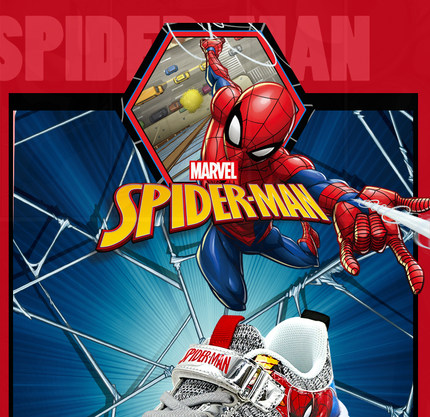 1件9.9折【Disney/迪士尼】儿童鞋运动鞋,蜘蛛侠卡通图案,可爱时尚,质感细节,锁定街头视线,麂皮加拼接织物鞋面,透气舒适网面,无拘无束,充满童趣和时尚休闲感。
