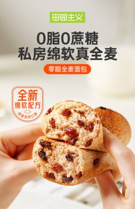 田园主义 全麦面包欧包无蔗糖0代脂早餐低轻主食品肥零减饱腹粗粮 22.9元(需用券)
