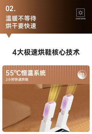 志高烘鞋器,家用暖鞋器神器,除臭祛菌一步到位,快速烘干,烘干率达99%,紫光+玫瑰盐双重抑菌,360°立体环温,四季必备,防潮防霉,强力杀菌,多重保护,使用安全。