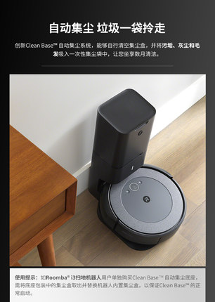 iRobot Roomba i3 扫地机器人,Roomba i3+/i4+是i7的高配升级版,实际是搭配一个自带吸尘器的Clean Base充电座,在核心硬件上采用了自动集尘底座、进阶版双效组合胶刷,并且拥有十倍的吸力。irobot i3/i4较i7外观更加小巧,可以清扫床底、沙发底部等低矮区域。irobot i3+/i4+也是将自动集尘系统当成一大亮点,它具有三重清洁,能够断点回充,且双机互联,同时支持App控制,适用面积120㎡以上。相对iroboti7+更先进的是它能够除螨、霉菌、花粉、灰尘等,这对于家里有小宝宝或是过敏体质的就是大大的福音了。irobot i3/i4依然是采用了双效组合胶刷以及单边刷的配置,单边刷可以帮助Roomba i3+更好地清洁墙壁边缘的灰尘垃圾,而iRobot Roomba i3+的双效组合胶刷可以更好地协同合作,同时不会缠绕毛发,能够实现有效清洁地面常见的垃圾。此外,iRobot Roomba i3+在吸力方面相较于Roomba 600系列提升了十倍,能够提供强劲的吸力以吸取地面的垃圾。采用了智能直线导航技术,并配有地板追踪传感器,可以轻松分辨地毯以及木质地板。与Google Assistant 和Alexa兼容,只需语音命令即可轻松启动清洁任务。