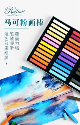 目前天猫商城马可旗舰店售价¥49.9,叠加¥30优惠券,实付¥19.9包邮,24色此价,36色略贵¥20,Marco色粉棒,它的附着力比粉笔更强,颜色也更鲜艳,可以用作头发的染色;也可以用作铺人物皮肤的底色,或者是铺背景色。 Marco 马可 Raffine 7300 粉画棒,混色效果细腻,笔触顺滑,覆盖力强。质地轻柔,细腻光滑。适合学生儿童绘画,以及相关专业美术领域。3层气泡膜+5层瓦楞纸保证,运输安心。