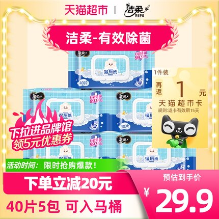 洁柔 湿厕纸 40片X5包 返后20.9元 (21.9元,返1元卡)