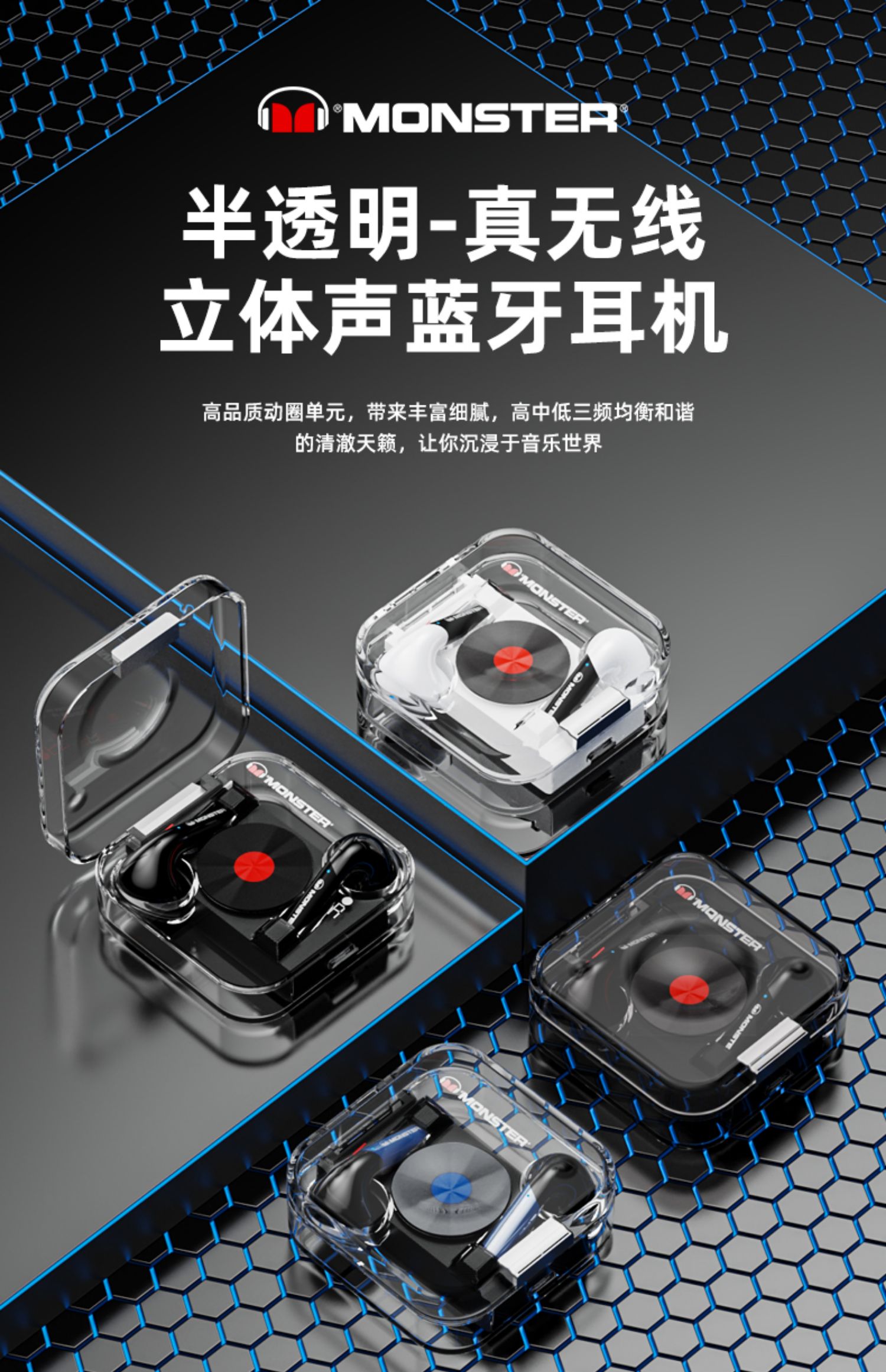 5.2蓝牙芯片,9D环绕音质,CVC降噪技术,开盖即联。目前这款蓝牙耳机在天猫商城MONSTER魔声安诺专卖店售价¥109,可领取¥50优惠券,实付¥59包邮到手,4色可选,标配此价,套餐一略贵10元,套餐二略贵20元。
