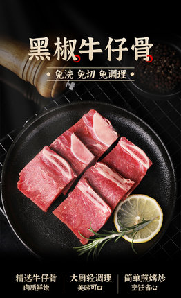 优选新西兰草饲黄牛,精选牛仔骨骨香肉多,鲜嫩不柴。青草家 黑椒牛仔骨半成品 ,优选新西兰草饲黄牛,草原牧场散养,优质部位整块切割,鲜嫩不柴,纹理清晰,口感丰富;科学排酸工艺,大厨轻调理,简单煎烤炒,烹饪省心。