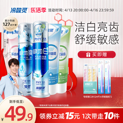 冷酸灵超值家庭套装,一套多效解决多重问题,冷热酸甜,想吃就吃。目前天猫旗舰店售价¥64.9,可领取¥25优惠券,券后实付¥39.9包邮,赠牙刷*2+漱口水12mL*3。