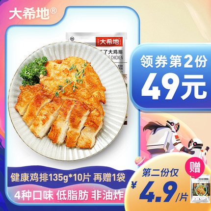 全国12仓发货,调味腌制半成品鸡排,简单煎熟即可食用。目前天猫商城大希地旗舰店135g*10片特价¥79,使用¥10优惠券,下单实付¥69包邮,下单即赠启辰鸡排100g*1片,到手共1450g。