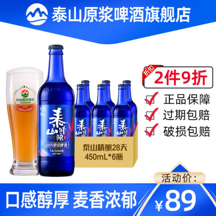 短保新鲜,泰山原浆啤酒 28天蓝色极光精酿啤酒 13度 450mL*6瓶49元包邮