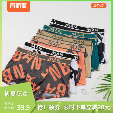 宜而爽 2023春夏新品冰丝凉感撞色明筋男士平角内裤 4条 29.9元包邮