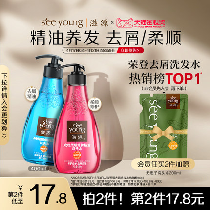 滋源 无硅油玫瑰柔顺/茶树控油清屑精油洗发水 400ml*2件 +赠洗发水200ml47.8元包邮