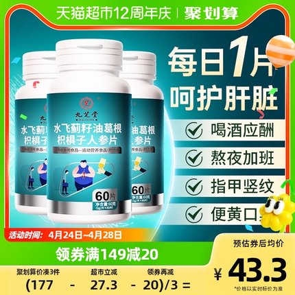 中华老字号,九芝堂 水飞蓟籽油葛根枳椇子人参片60片19.9元包邮