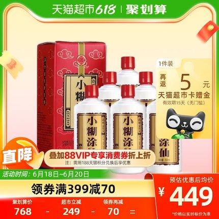 88VIP:小糊涂仙 普仙 52%vol 浓香型白酒 250ml*6瓶 整箱装 359.8元包邮(返5元猫超卡,双重优惠)