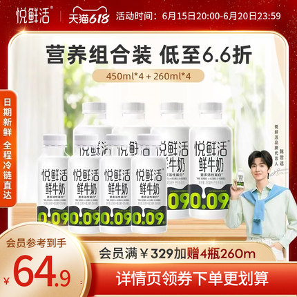 君乐宝 悦鲜活 鲜牛奶(450ml*4+260ml*4)49.9元包邮