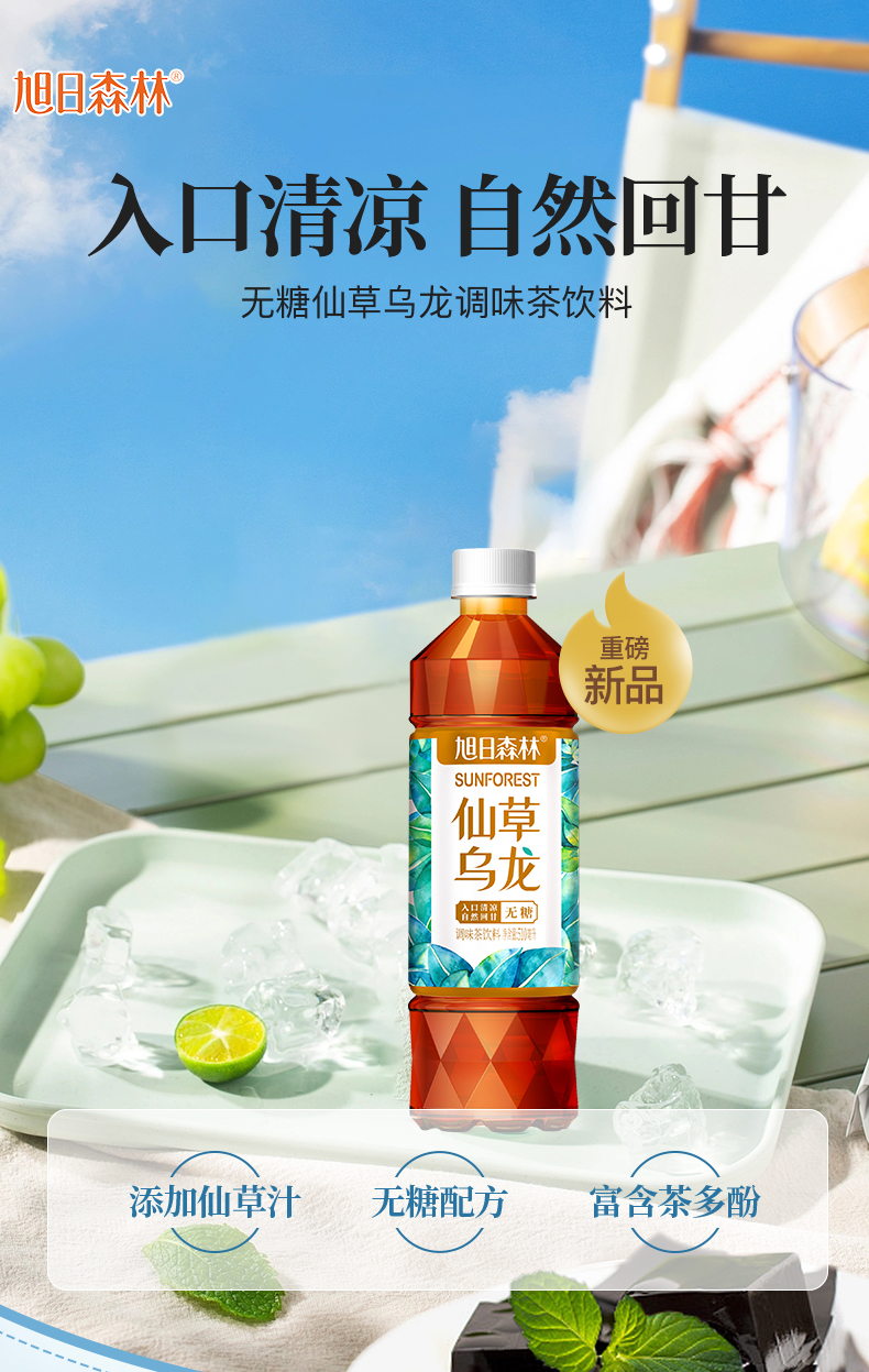 旭日森林 0糖0脂0卡仙草乌龙茶健康茶饮料,生产厂家为北京汇源集团开封有限公司,添加特级乌龙茶叶,高温萃取技术,富含茶多酚,保留茶叶香味,清润不涩;健康无糖配方,清爽解腻,0糖0脂0卡,饮用无负担。