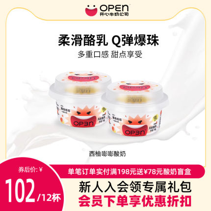 OP3N爆珠嘭嘭系列,百年匠心工艺,创新酪乳酸奶,果汁爆珠,嘭嘭口感,多重口感,甜点享受。目前天猫商城OP3N食品旗舰店140g*12杯售价¥148,下单立减叠加¥90优惠券,双重优惠实付¥47.64包邮,2款口味组合可选。
