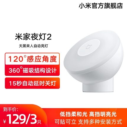 MI 小米 米家感应小夜灯2楼道卫生间卧室智能人体感应床头灯台灯低功耗 49元