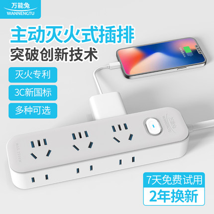 WANNENGTU 万能兔 主动灭火插排9位27孔 1.8m ¥17.9