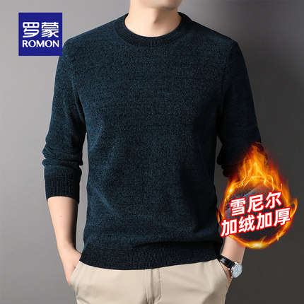 罗蒙 2023秋冬男士雪尼尔加厚圆领套头针织衫 2件 4色99元包邮(49.5元/件)