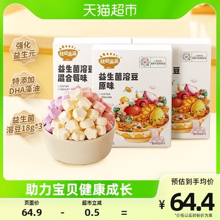 秋田满满 包邮】秋田满满益生菌DHA溶豆原味草莓儿童宝宝零食水果溶豆18g*3 券后27.93元